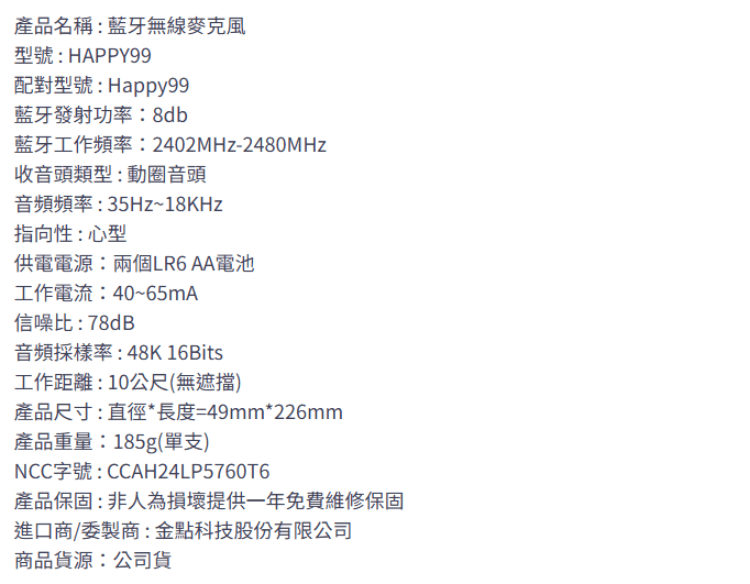 ☆閃新☆金點科技 Happy99 藍牙 無線麥克風(雙入組) K歌神器(公司貨)