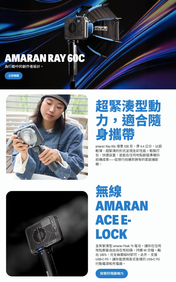 ☆閃新☆Aputure 愛圖仕 Amaran Ray 60c LED 補光燈 攝影燈(RAY60C,公司貨)
