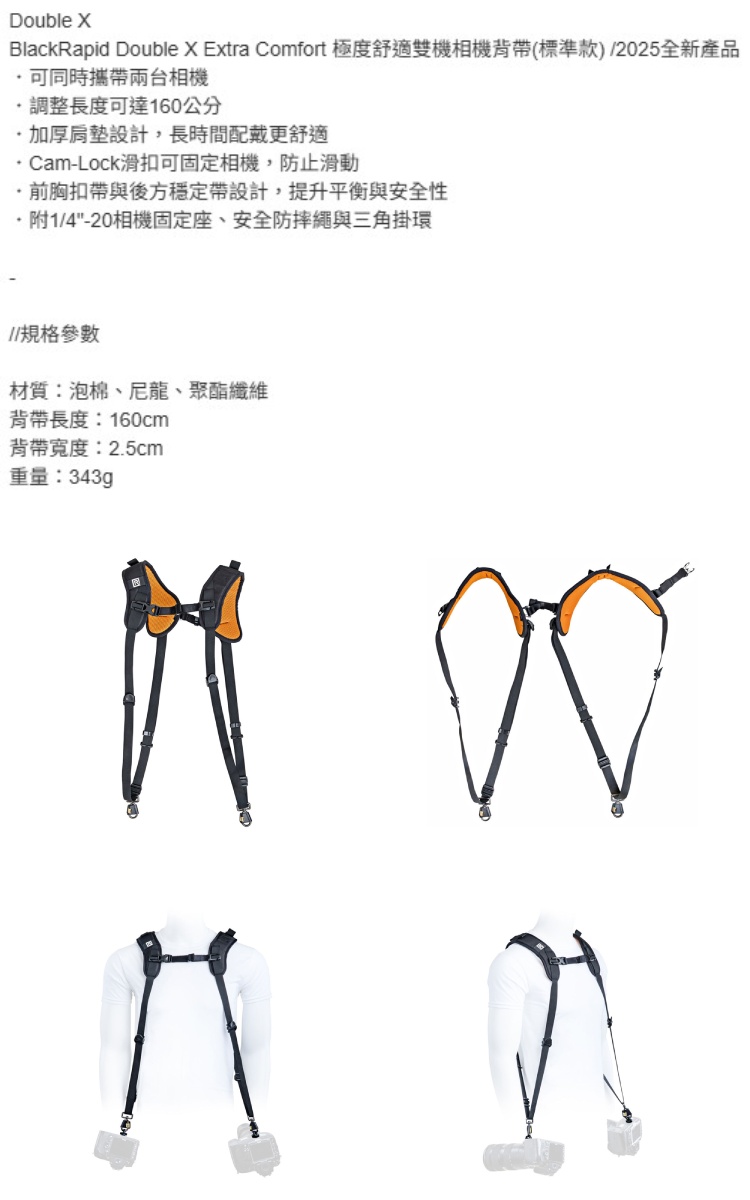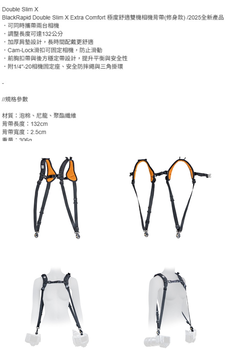 ☆閃新☆BlackRapid Double X 標準款/ Double Slim X 修身款 Extra Comfort 極度舒適 雙機 相機背帶(公司貨)