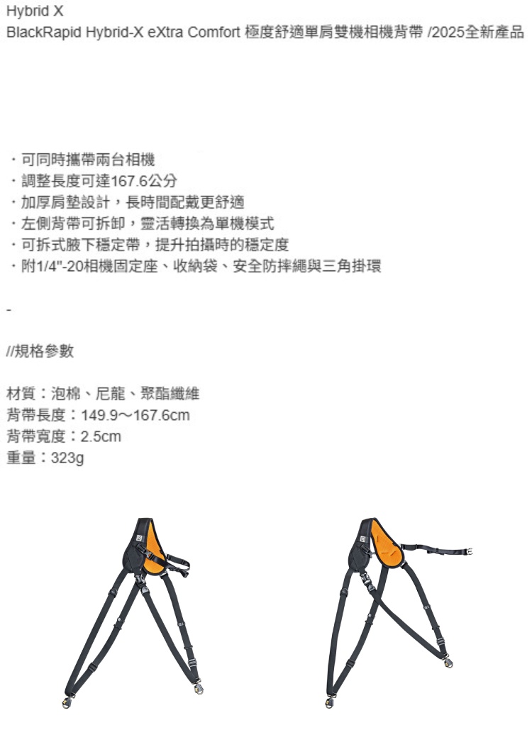 ☆閃新☆BlackRapid Hybrid-X eXtra Comfort 極度舒適單肩雙機相機背帶(公司貨)