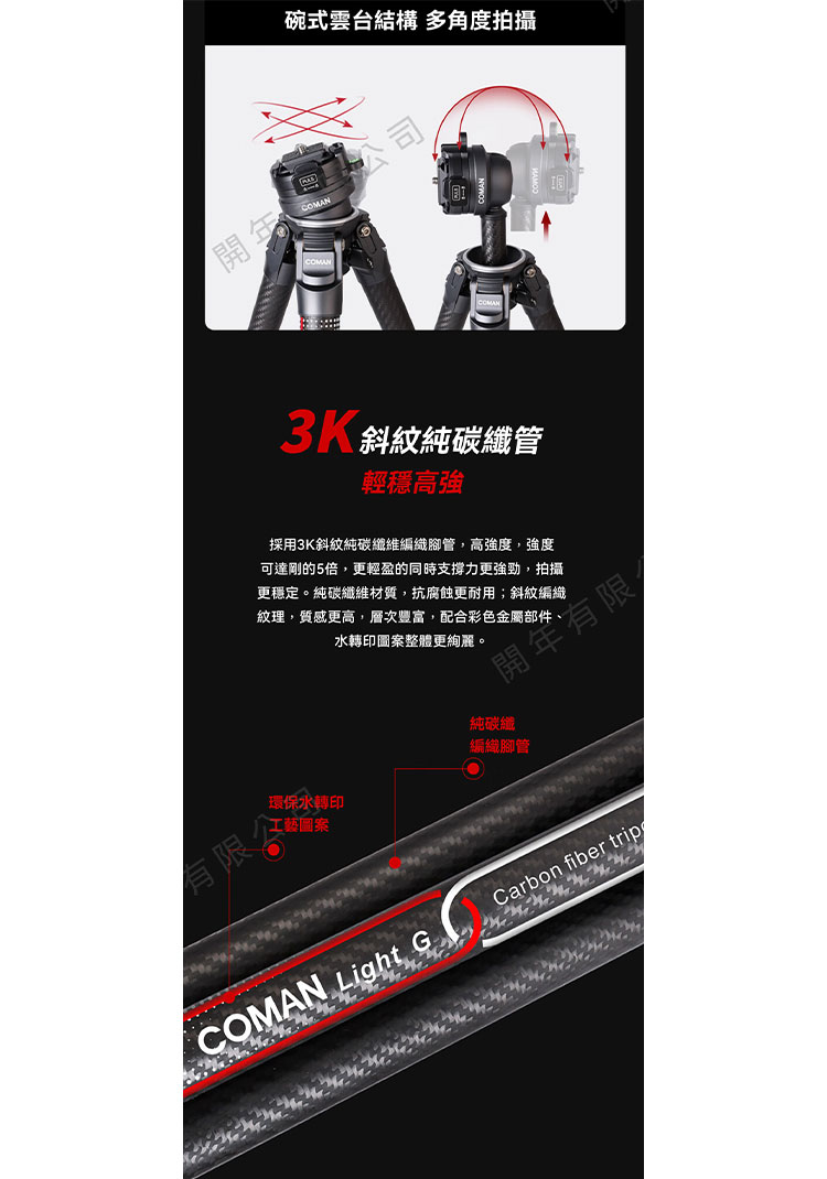 ☆閃新☆Coman 科漫 Light 光系列 碳纖維三腳架 黑/白 公司貨