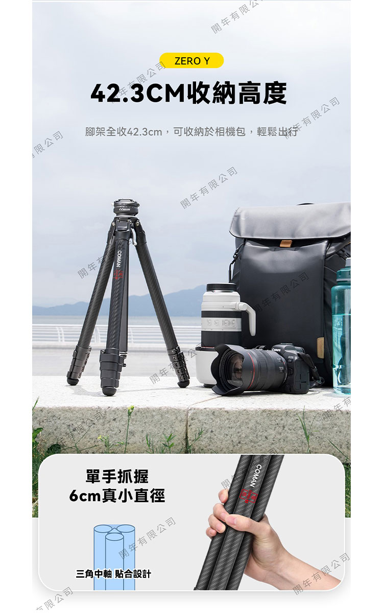 ☆閃新☆Coman 科漫 Zero Y+ 零感系列 碳纖維三腳架(+多附一節中柱)(ZEROY,公司貨)