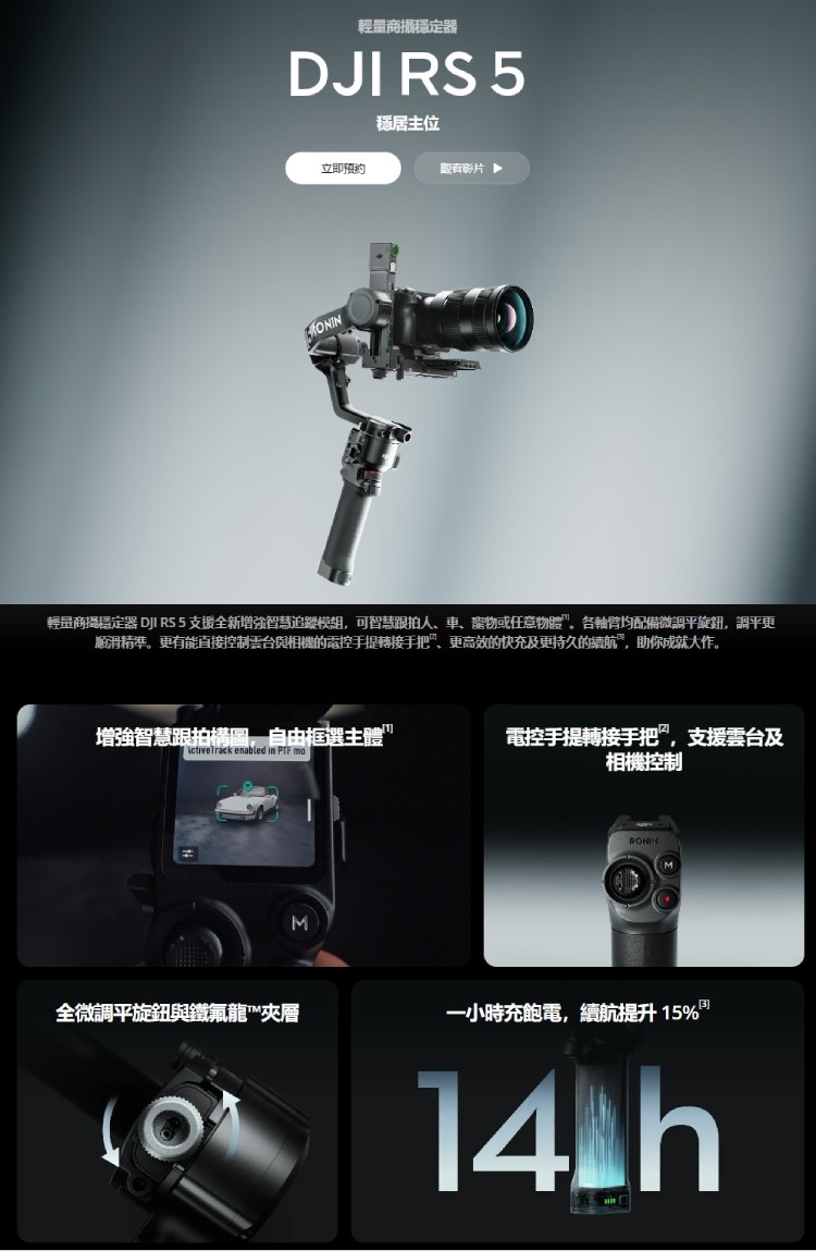 ☆閃新☆DJI RS5 單機版 手持雲台 單眼/微單相機三軸穩定器(公司貨)