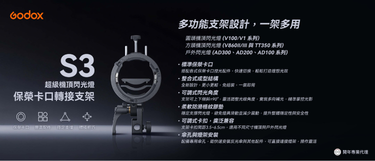 ☆閃新☆Godox 神牛 S3 機頂閃光燈 轉接Bowens保榮卡口 支架(適V100、V1、V1Pro、AD300pro、AD200)