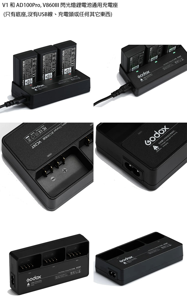 ☆閃新☆Godox 神牛 V1-VC26T 3孔充電座 VB26 無附充電線(V1 AD100 Pro V860III 充電器)公司貨