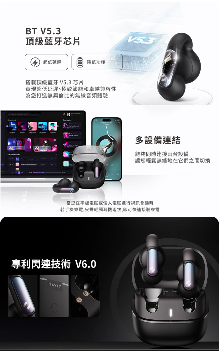 ☆閃新☆HAVIT 海威特 開放式 記憶耳夾 無線藍芽耳機 J型人體工學設計 AI降噪卓越音質(TW980,公司貨)
