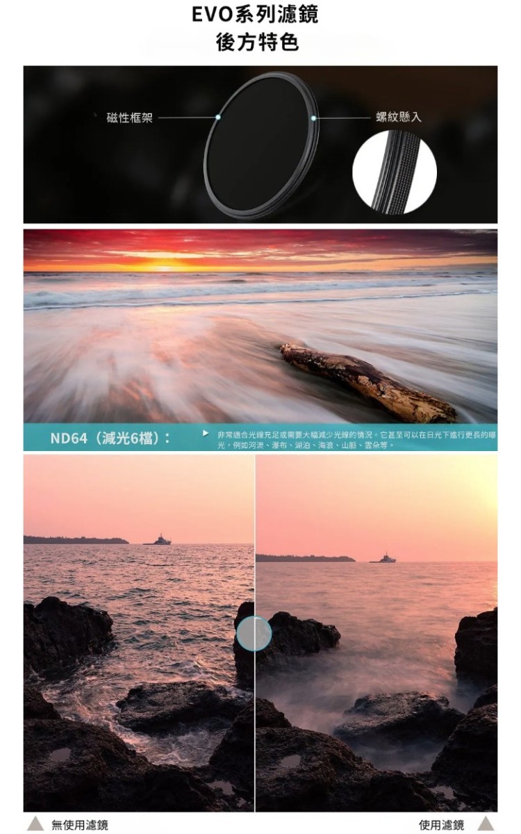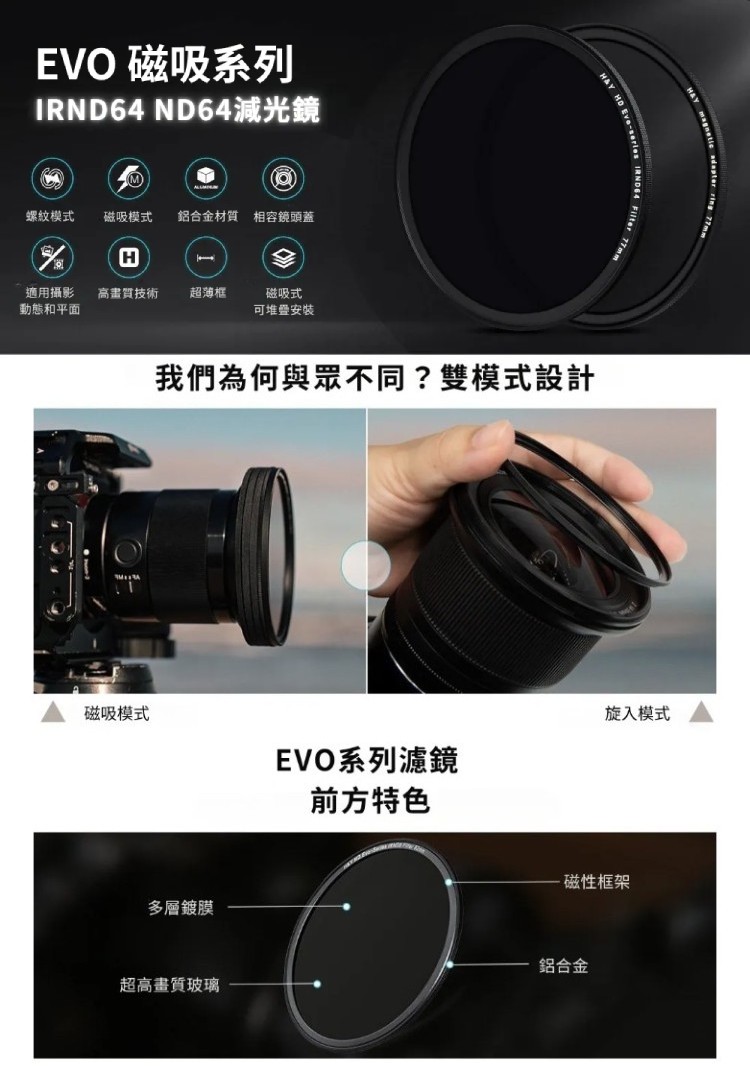 ☆閃新☆H&Y HD EVO系列 磁吸 螺紋二合一 ND64 減光鏡 減光六檔(公司貨)