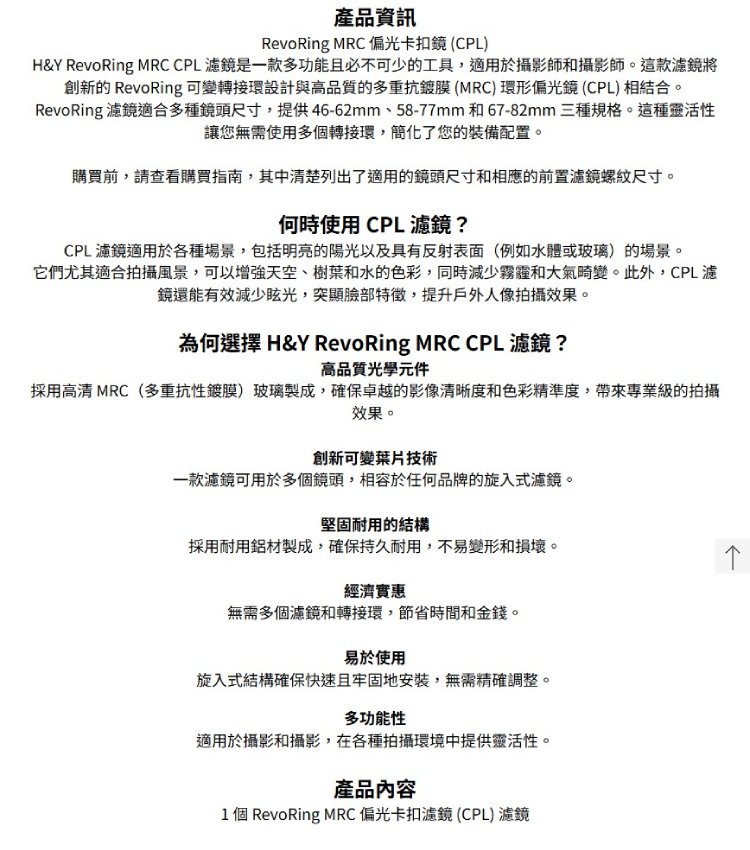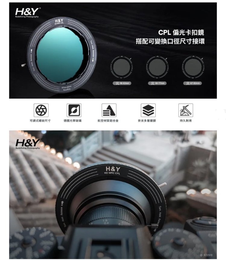 ☆閃新☆H&Y RevoRing 偏光卡扣鏡 MRC CPL 46-62mm 58-77mm 67-82mm(公司貨)偏光鏡