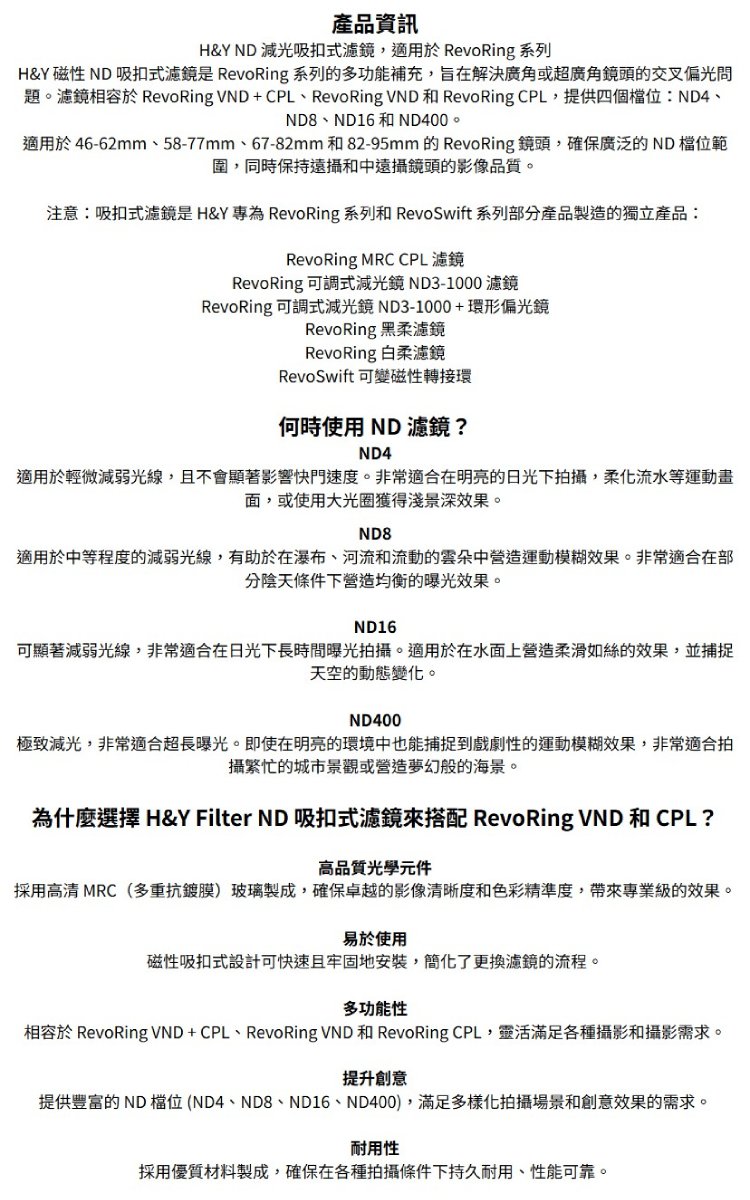 ☆閃新☆H&Y RevoRing ND 減光 67-82mm 吸扣式濾鏡(ND4/8/16/400)公司貨 適RMII 大師三合一