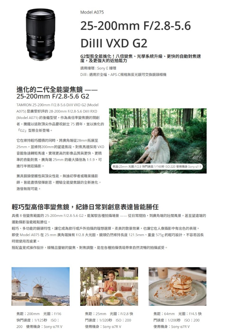 ☆閃新☆TAMRON 騰龍 25-200mm F2.8-5.6 DiIII VXD G2 旅遊鏡(A075,公司貨)SONY E-MOUNT