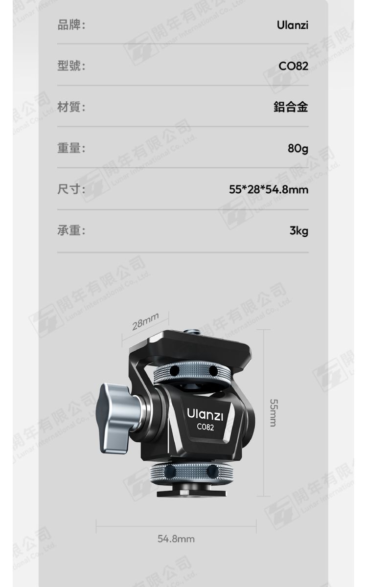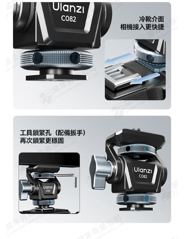 ☆閃新☆Ulanzi C082 蝸牛雲台 相機 熱靴擴充 轉換座 監看螢幕可用、安裝手機夾、運動攝影機(公司貨)