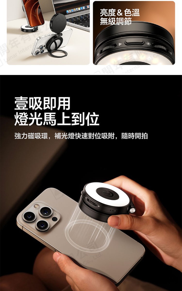 ☆閃新☆Ulanzi LM23 手機 magsafe 磁吸 補光燈 二代 亮度色溫,無級調節