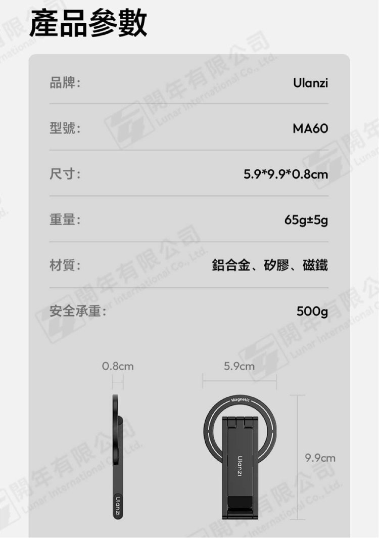 ☆閃新☆Ulanzi MA60 口袋 磁吸手機支架(公司貨)65g、8mm極致輕薄、雙面強力磁吸、多角度