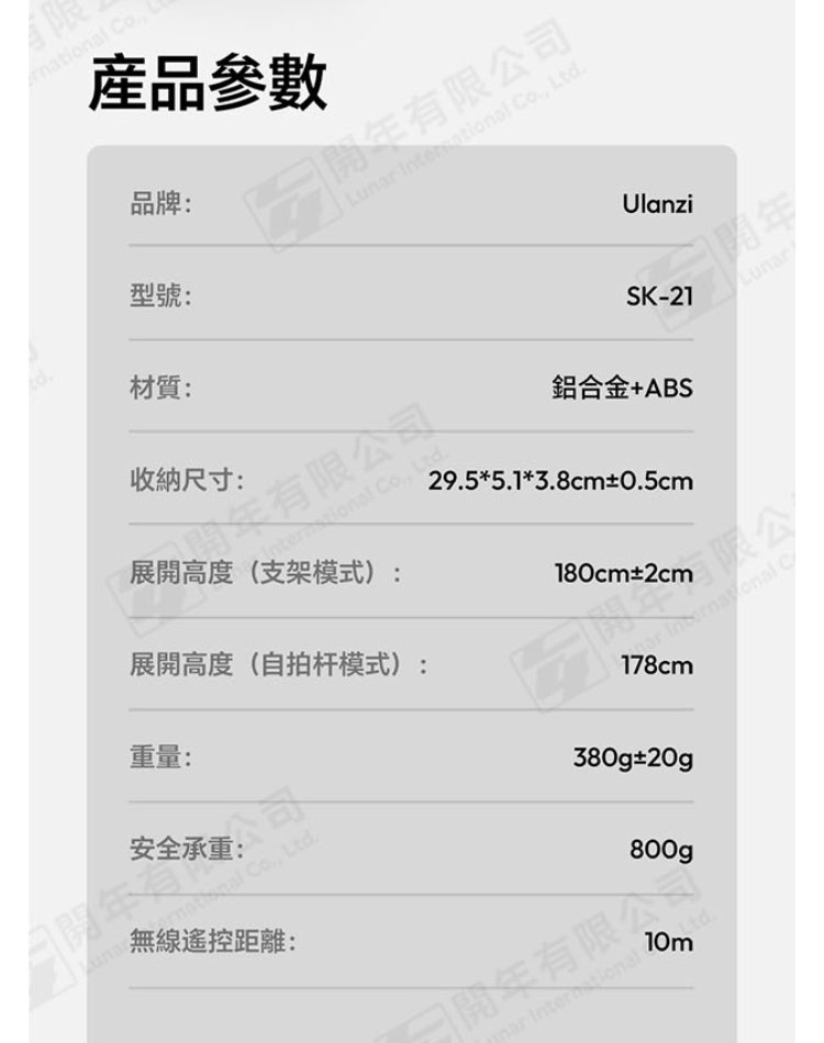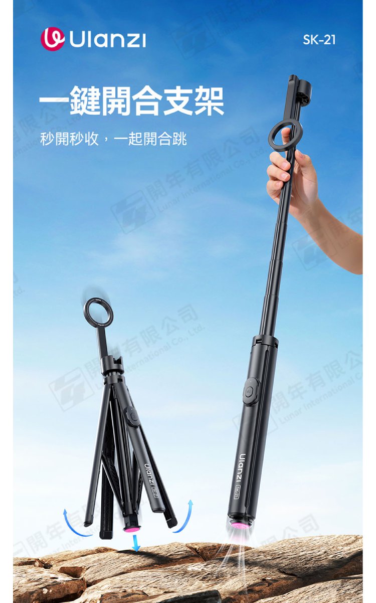 ☆閃新☆Ulanzi SK-21 一鍵開合落地支架、自拍棒、單腳架(SK21,公司貨)