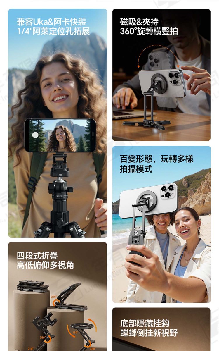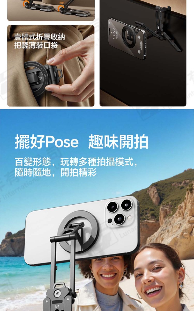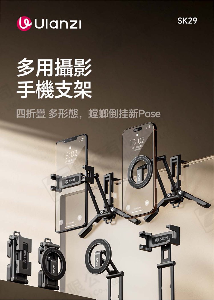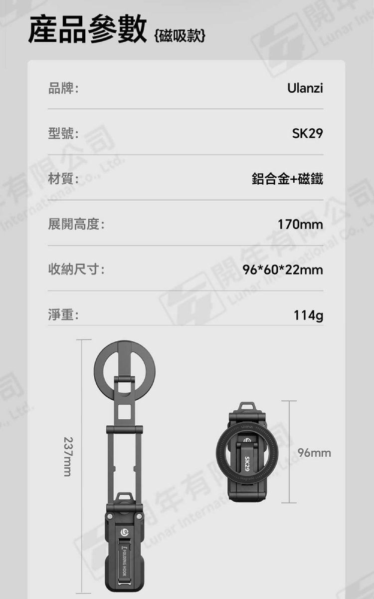 ☆閃新☆Ulanzi SK29 多用攝影手機支架 M101 SK29(磁吸款) /1/4"Arri定位孔、四段式折疊、一體式收納、底部隱藏掛勾