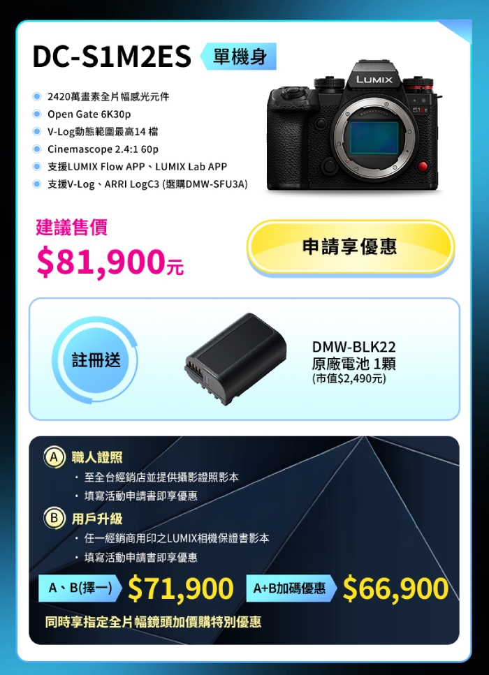現貨~活動登錄送好禮~Panasonic Lumix S1M2ES 單機身(公司貨)S1 II ES
