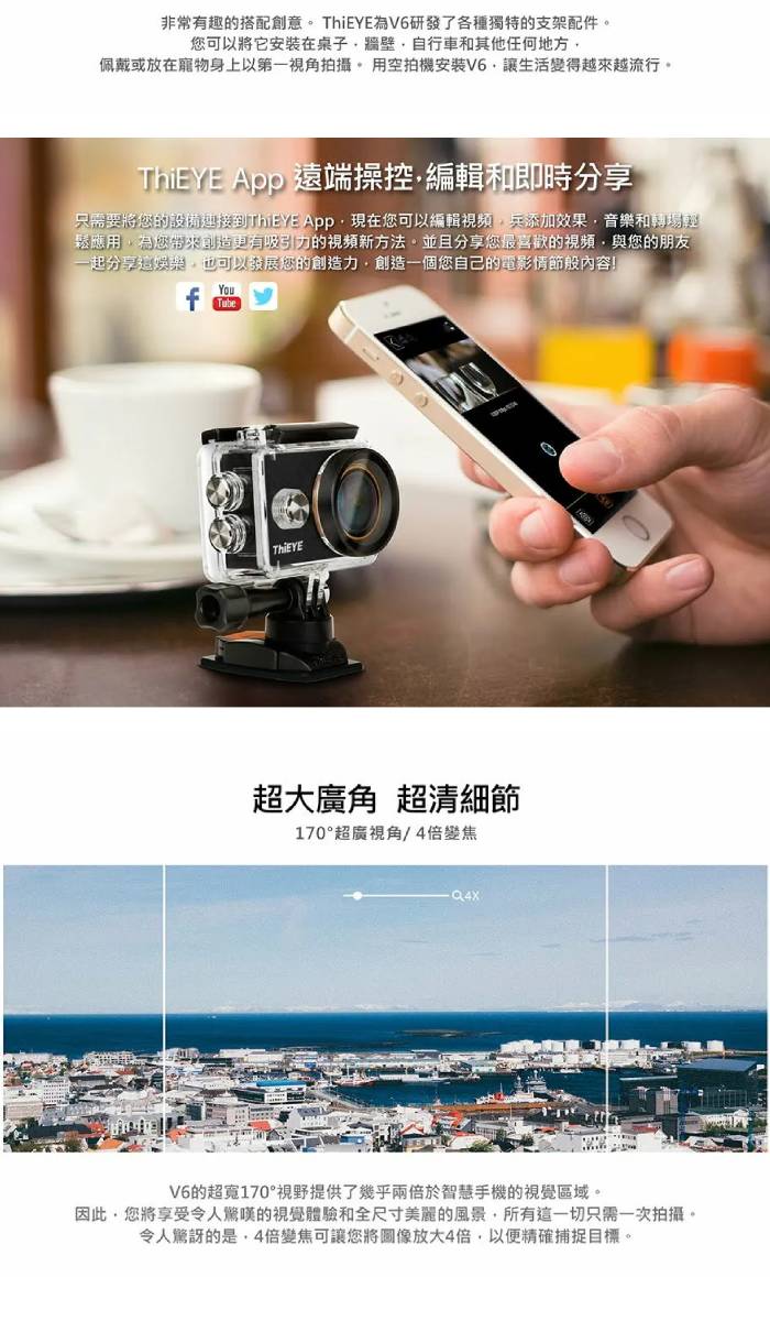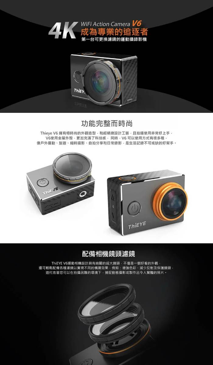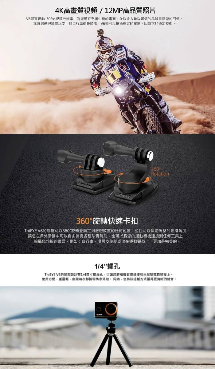 ThiEYE V6 生活行動攝影機 入門 運動相機 4K 60M防水 防塵 防震 行車紀錄器 (公司貨)