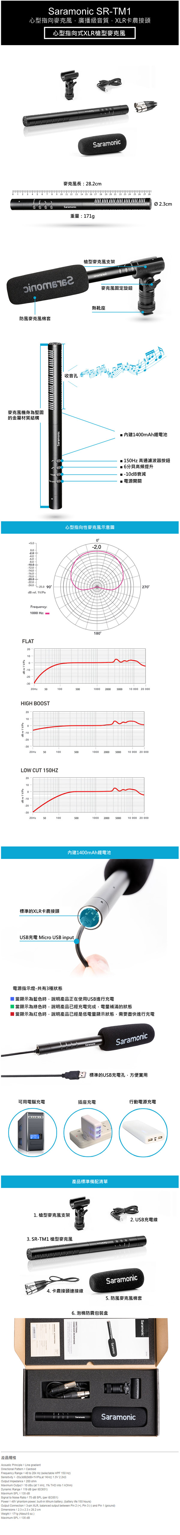 ★閃新★分期0利率,免運費★Saramonic 楓笛 SR-TM1 心型 指向式 XLR槍型麥克風 廣播級 收音(SRTM1 公司