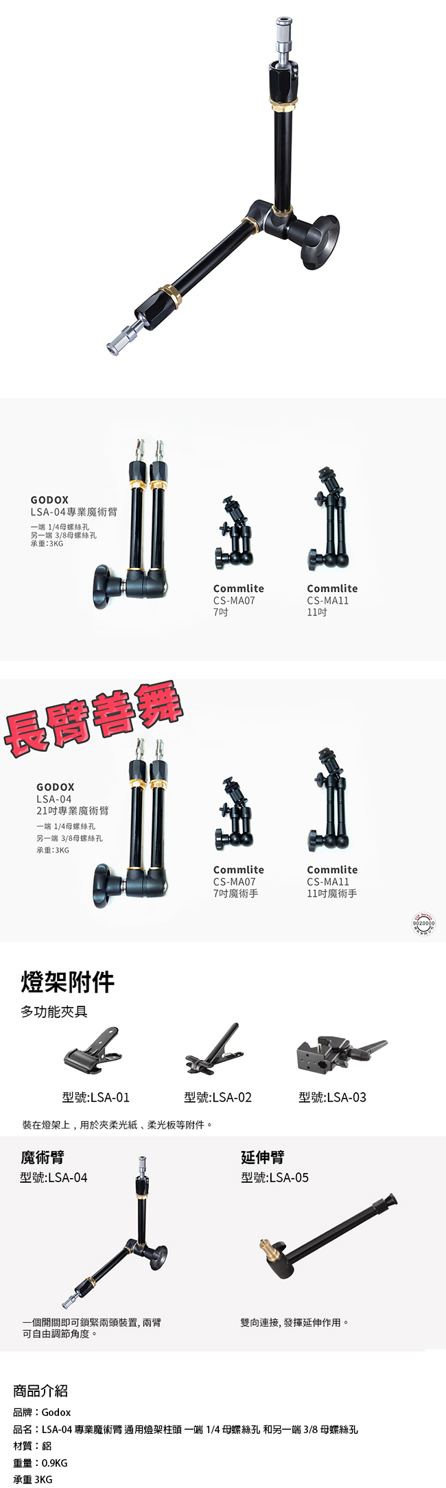 ★閃新★Godox 神牛 LSA-04 專業魔術臂 相機 閃光燈 麥克風 魔術怪手 魔術臂 支架(LSA-04,公司貨)