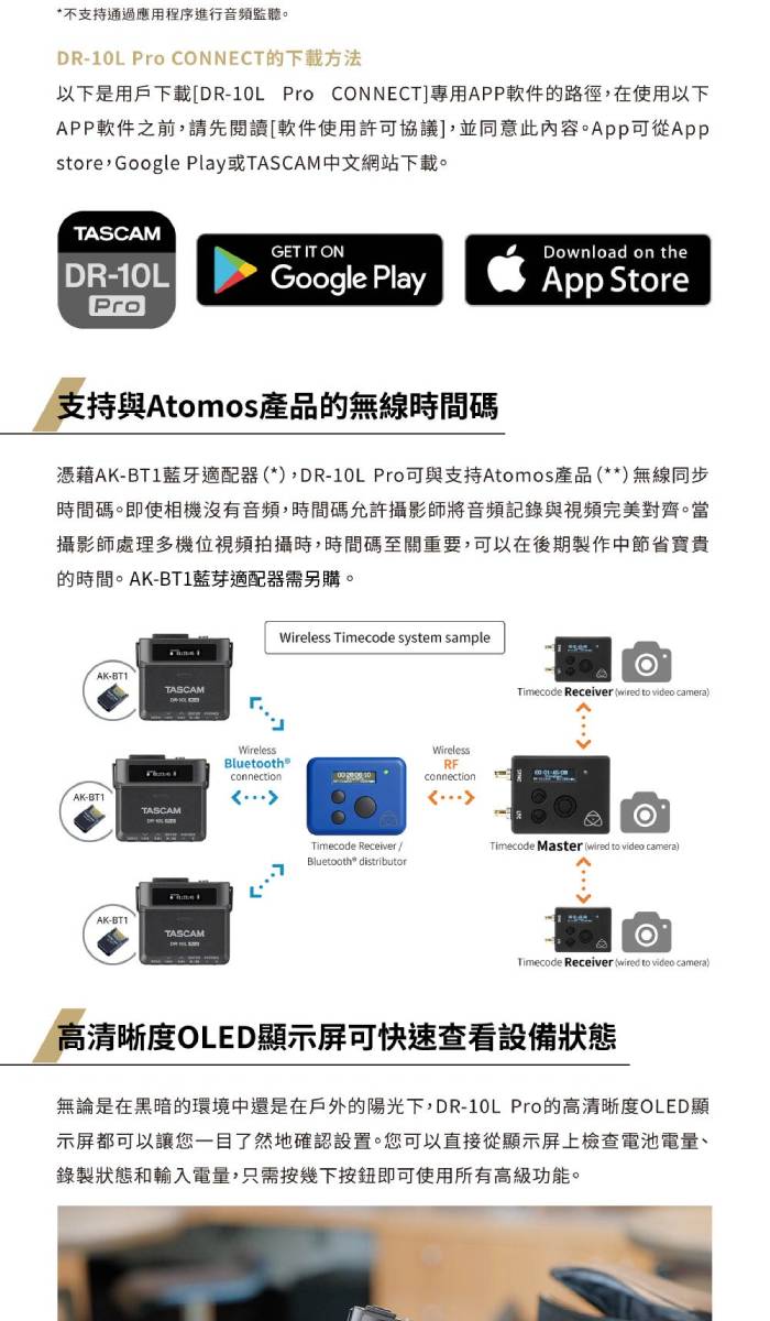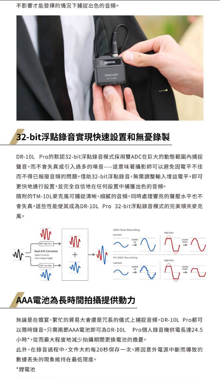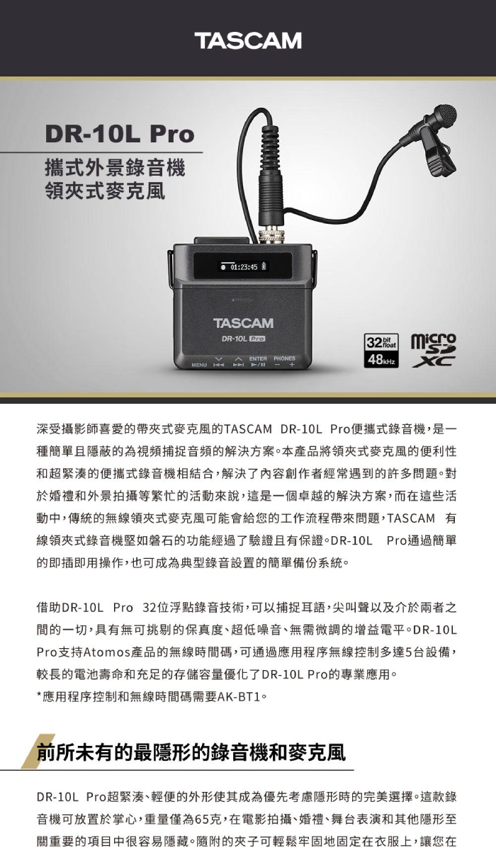 TASCAM 達斯冠 DR-10L Pro 便攜式 外景 錄音機 領夾式 麥克風 (公司貨) DR10LPRO