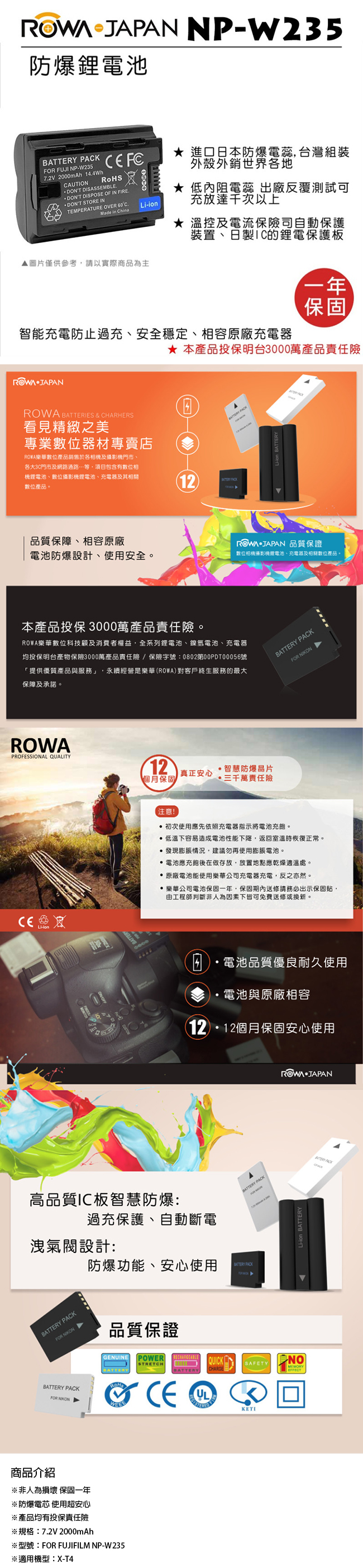 ★閃新★ROWA 樂華 Fujifilm 富士 NP-W235 副廠電池 XT4 XT5專用(NPW235,公司貨)