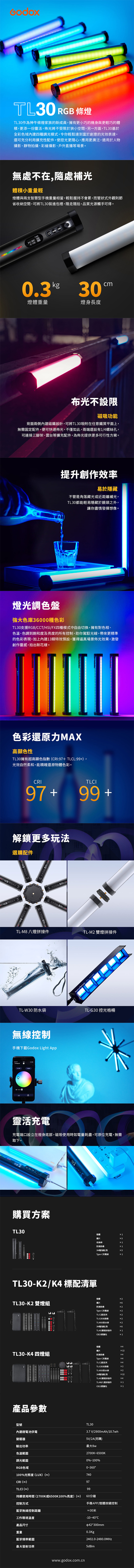 ★閃新★Godox 神牛 TL30-K2 磁吸式 RGB 條燈 雙燈組( TL30K2,公司貨) 直播 遠距教學 視訊 補光燈