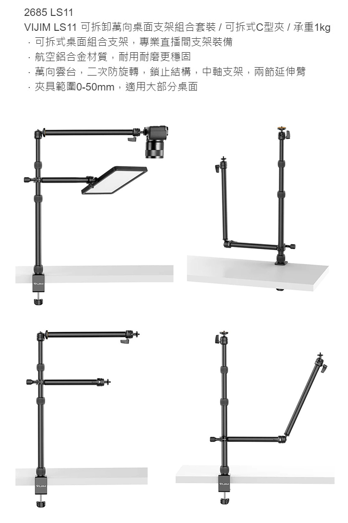 VIJIM LS11 可拆卸 萬向桌面支架組合套裝 可拆式C型夾 承重1kg