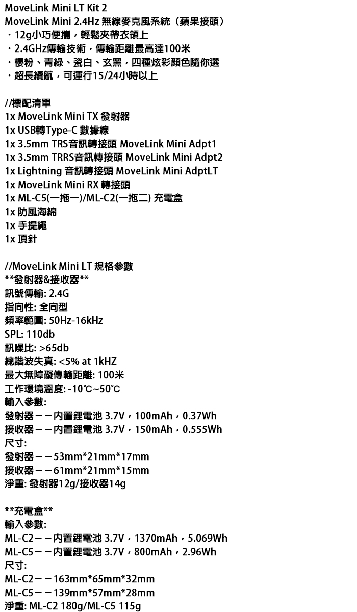 MoveLink Mini LT Kit 2 一對二 無線麥克風 Lightning