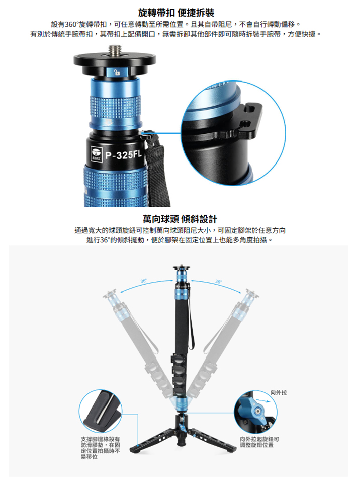 5節式腳管,採用4枚扳扣,實現舒適的操作體驗感