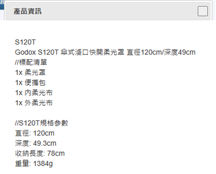 ☆閃新☆Godox 神牛 S120T 傘式 淺口 快裝 快收 快開 柔光罩 直徑120cm/深度49cm 保榮卡口(公司貨)