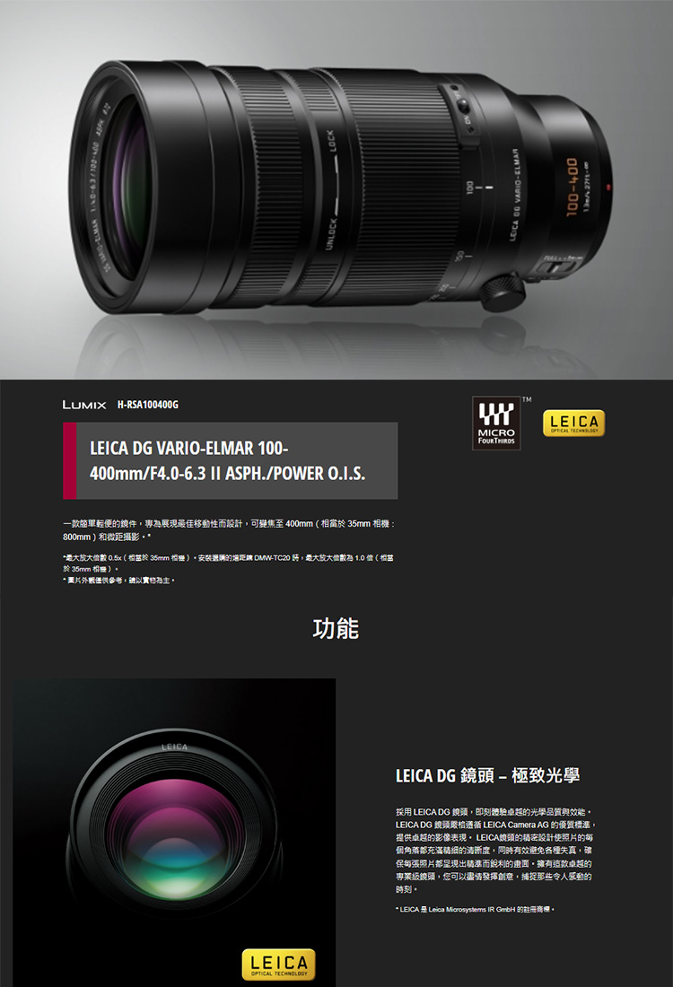 ☆閃新☆Panasonic 100-400mm F4.0-6.3 II ASPH./POWER O.I.S.鏡頭(100-400 II,公司貨)