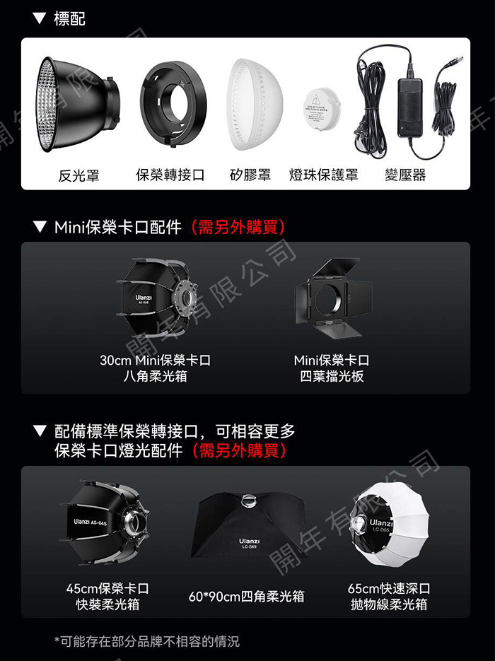 標配反光罩、矽膠柔光罩、保榮卡口轉接座
