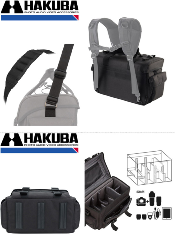 前部、兩側和上蓋背面都有方便的小儲物袋。底部防汙處理。小型三腳架和服裝固定在頂部皮帶上,可以攜帶。