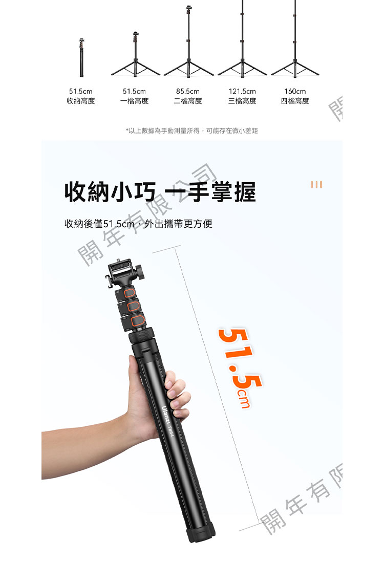 Ulanzi TB64 1.6m鋁合金四節落地支架 / 收納僅52cm / 扳扣式