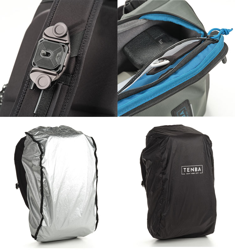 Tenba Solstice 斜背包結合了背包的全天候舒適支撐和肩背包的快速相機取用功能,同時背包還附有防雨罩。